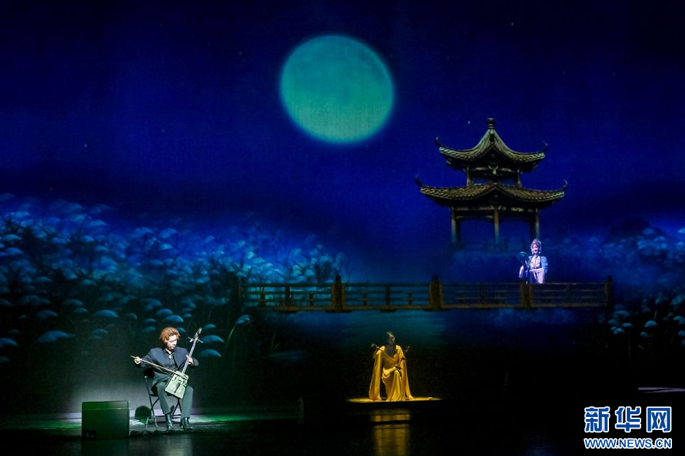 在音乐会现场,演员走入观众席与听众互动演唱。新华网发