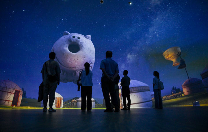 游客在通辽市扎鲁特旗南宝力皋吐遗址博物馆参观(2025年8月10日摄)。