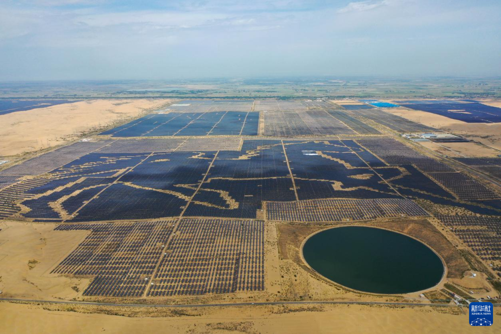 2025年6月,位于库布其沙漠的达拉特旗光伏基地(无人机照片)。新华社记者 李志鹏 摄