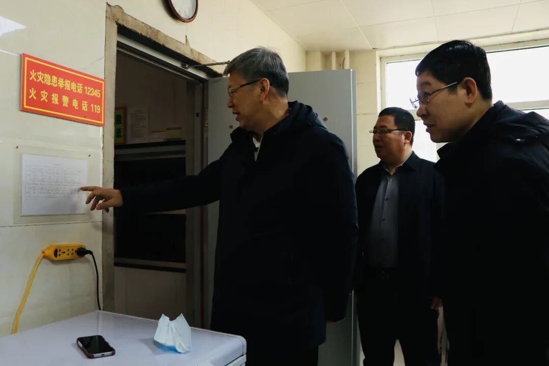 孟宪东在库伦旗中心敬老院实地查看生活保障、膳食服务、消防安全等情况。