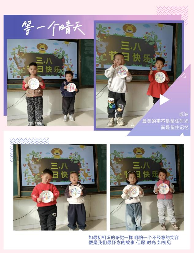 此次“三八”妇女节主题活动,不仅锻炼了孩子们的动手能力和创造力,更在他们心中播下了“感恩”的种子。通过亲手制作礼物、表达爱意,孩子们学会了用行动回馈关爱,也让节日的意义在童心中生根发芽。未来,我园将继续开展此类主题活动,让爱与感恩成为孩子们成长路上最美的底色。