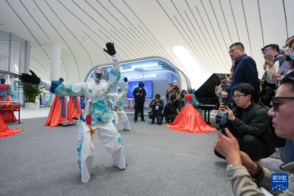 3月24日,在中关村国际创新中心,机器人乐队与舞蹈机器人在表演。新华社记者 鞠焕宗 摄