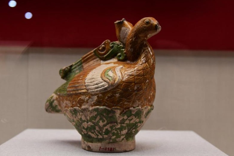 通辽市文博院辽代三彩交颈鸳鸯壶。