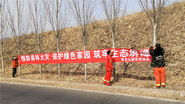 悬挂森林草原防火宣传语。通辽市林业和草原局供图