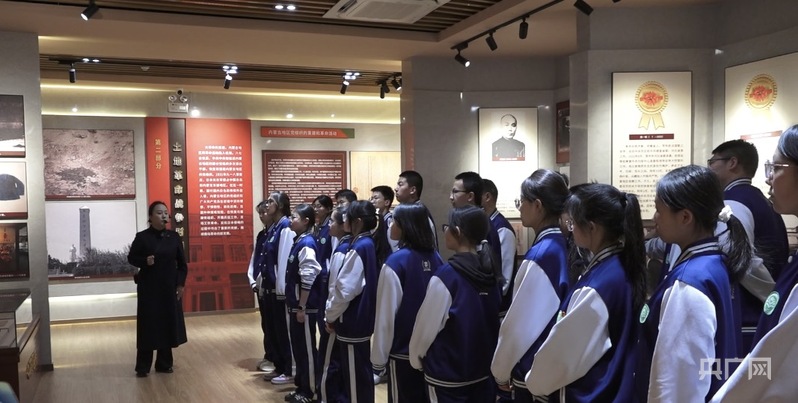 学生聆听先烈的故事(央广网记者 刘一晨 摄)