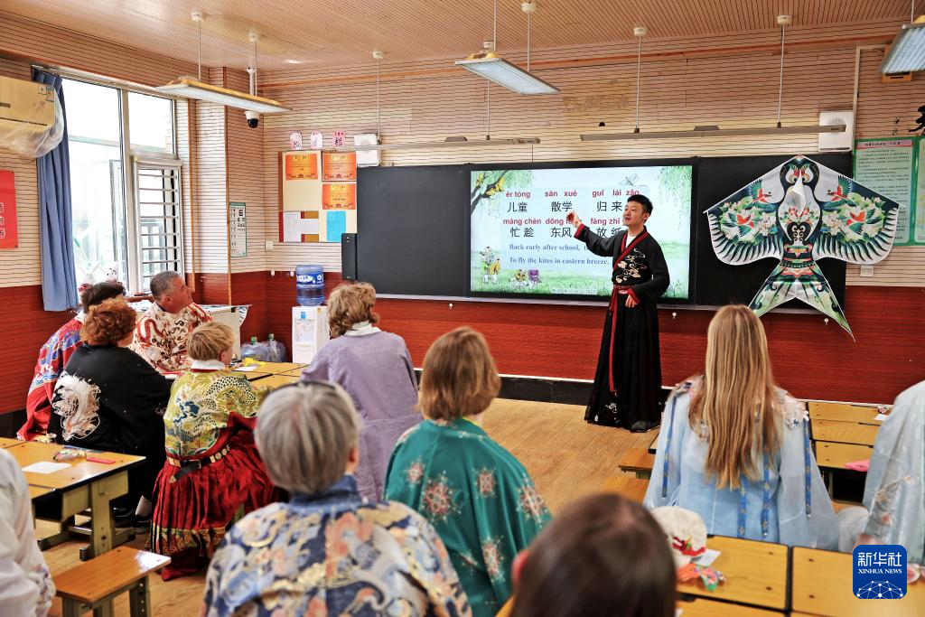 4月11日,美国学生在石家庄外国语学校学习中国古诗。新华社记者 卢烨