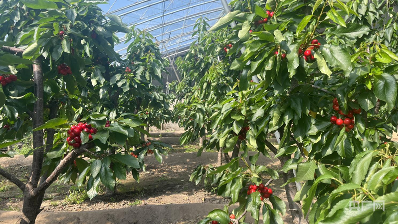 红彤彤的樱桃即将成熟(央广网发 郭大蕾 摄)