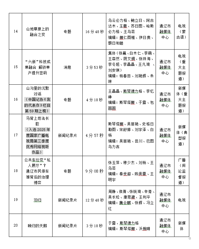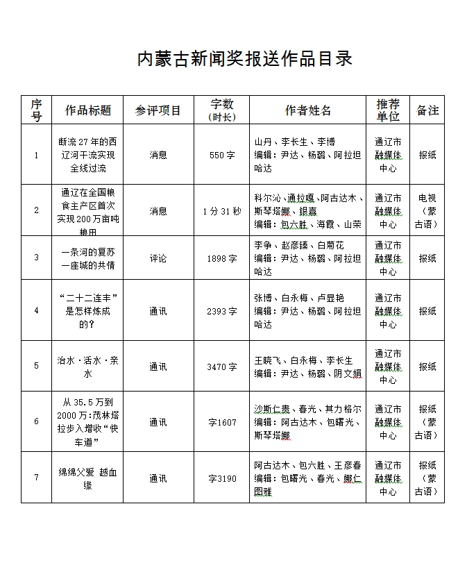 2026年3月25日经通辽市新闻工作者协会专家初评委员会初评,评选出报送2025年内蒙古新闻奖作品共69件,自公示之日起,任何单位和个人如有异议,请于2026年4月16日前,以电话形式予以反映。