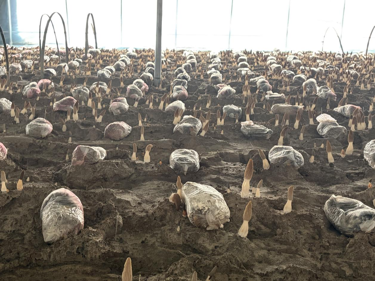 高标准设施大棚里的羊肚菌已经陆续成熟(姜美娜摄)