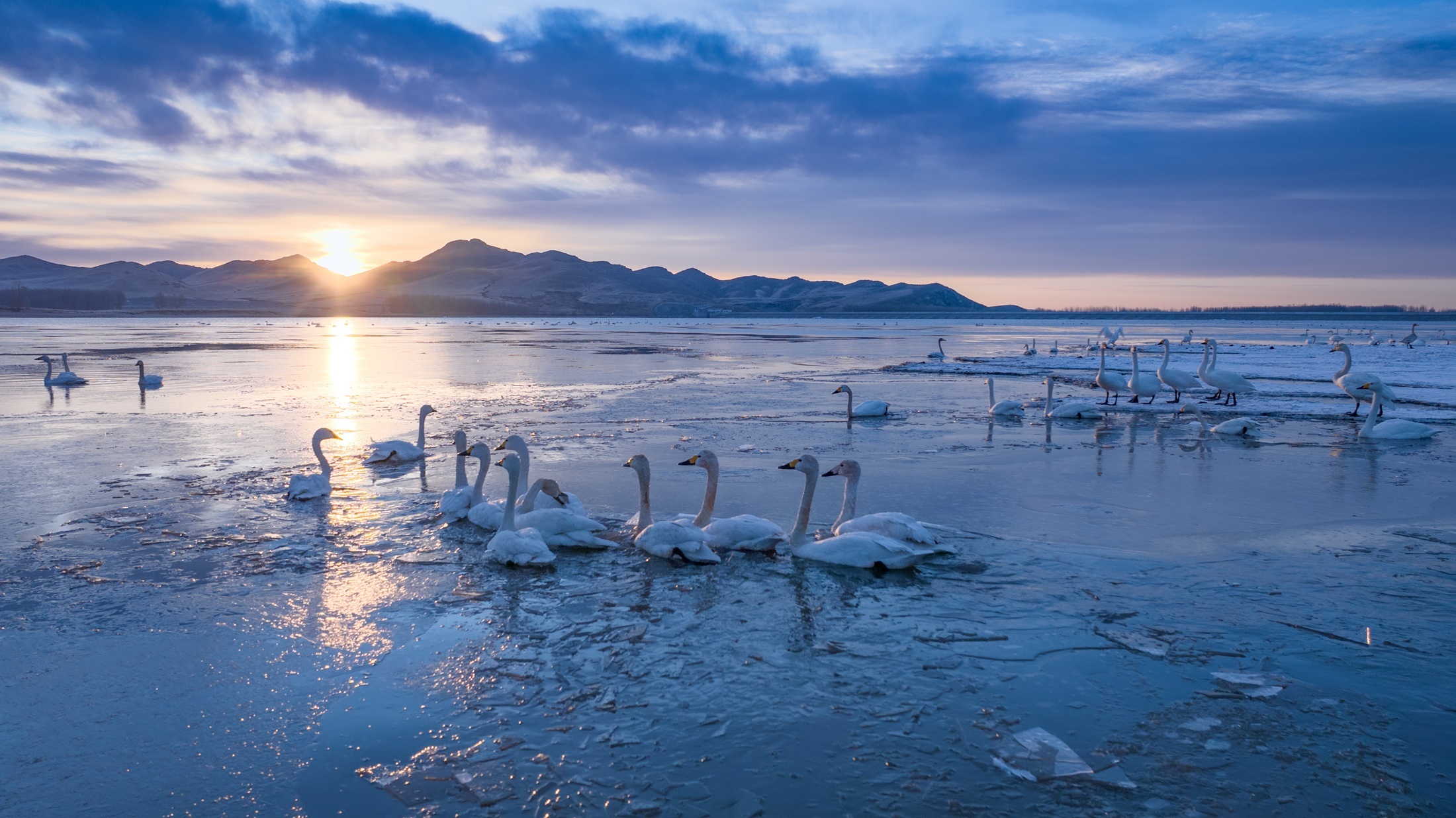 白天鹅嬉戏玩耍。(摄影:白敖敏)