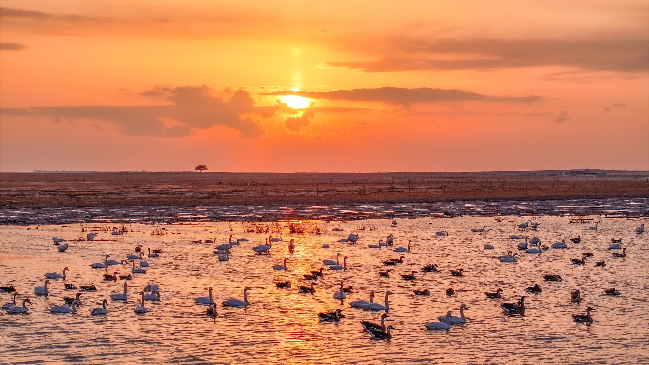 随着天气转暖,通辽市扎鲁特旗境内迎来今春首批北迁候鸟,上万只候鸟在草原湿地沼泽内觅食嬉戏、展翅盘旋,构成一幅百鸟闹春图,为扎鲁特草原带来无限生机。近年来,随着扎鲁特旗生态环境的不断改善和民众保护野生动植物意识的不断提高,全旗境内大小湖泊和湿地引来各类候鸟到此栖息、繁衍,也成为了候鸟迁徙途中休息觅食、补充能量的固定“驿站”。每年春秋两季过境的候鸟达数万只,种类十余种,其中不乏丹顶鹤、东方白鹳、白琵鹭、白天鹅、灰鹤等国家一、二级重点保护动物。
