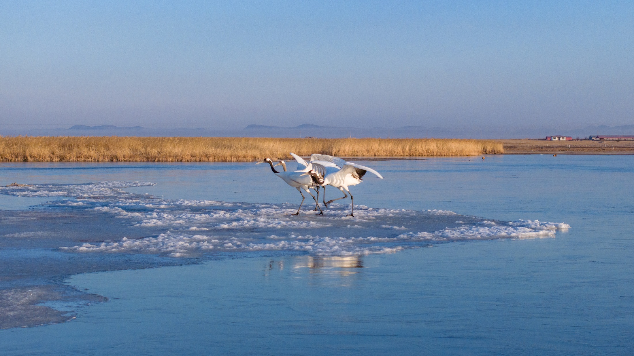 冰上鹤舞,踏雪逐春风。(摄影:白敖敏)