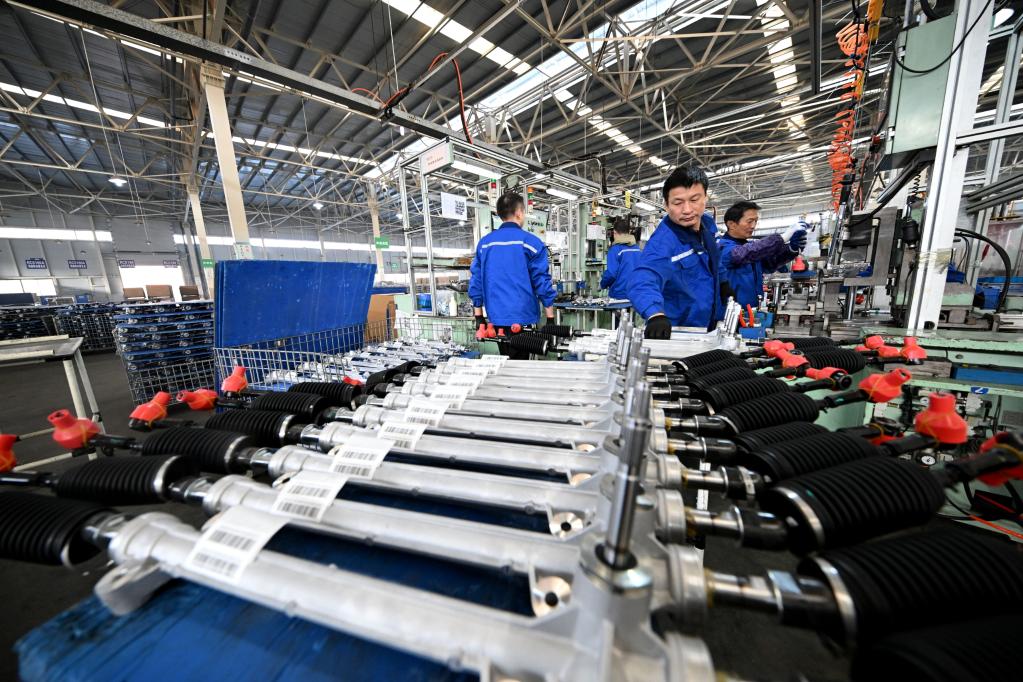这是抚州东乡经开区的江西荣成机械制造有限公司工人在生产汽车零配件(2025年12月16日摄)。(何江华 摄)